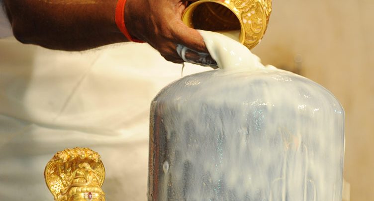 Rudra Abhishek is a Hindu ritual performed to invoke the blessings of Lord Shiva, the Hindu God of destruction and transformation. It is usually performed in temples or at home by priests or family members, and involves offering libations of water, milk, ghee, and panchamrita (a mixture of honey, sugar, yogurt, and clarified butter) to a Shiva lingam – a representation of the god in stone or metal. The ritual is also accompanied by chanting of Sanskrit mantras from the Vedas and other religious scriptures. Rudra Abhishek is said to bring prosperity, peace, and success to all who take part in it.